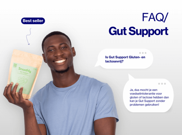 Dit zou kunnen komen door de vezels in Gut Support. Zeker wanneer je naast Gut Support nog andere voeding(supplementen) neemt waar ook veel vezels in zitten. Wanneer winderigheid/flatulentie, een opgeblazen gevoel of diarree optreedt wordt aangeraden de dosering naar te halveren en te kijken wat het effect hiervan is. Als er geen klachten zijn kan de hoeveelheid poeder in stapjes verhoogd worden tot de normale dosis (soms treedt er later nog gewenning op). Als er bij een halve dosis nog steeds hele vervelende klachten zijn, adviseren wij te stoppen met het gebruik.