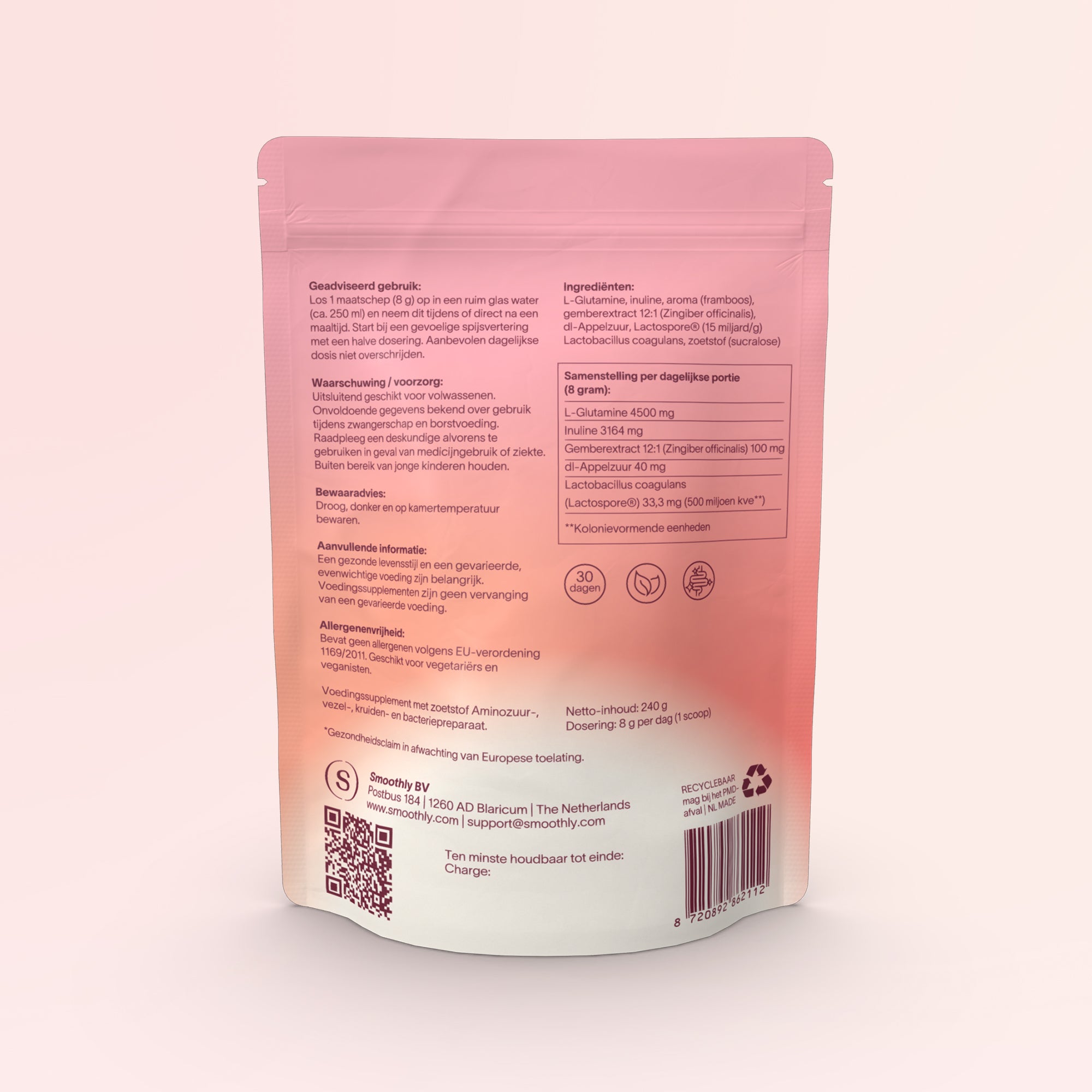 Ontdek Smoothly Gut Support, een zorgvuldig samengesteld voedingssupplement dat ondersteuning biedt binnen je dagelijkse routine. Gut Support is ontworpen om eenvoudig in gebruik te zijn en bevat gember, dat de spijsvertering ondersteunt*.